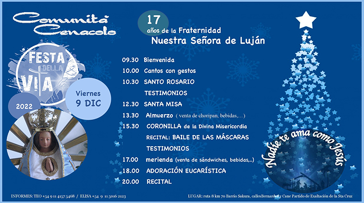 Queridos amigos del Cenacolo, queremos invitarlos a participar de la Fiesta de la Vida 2020, festejaremos los 15 años de vida en la Argentina. Toda la fiesta se realizará digitalmente por you tube.